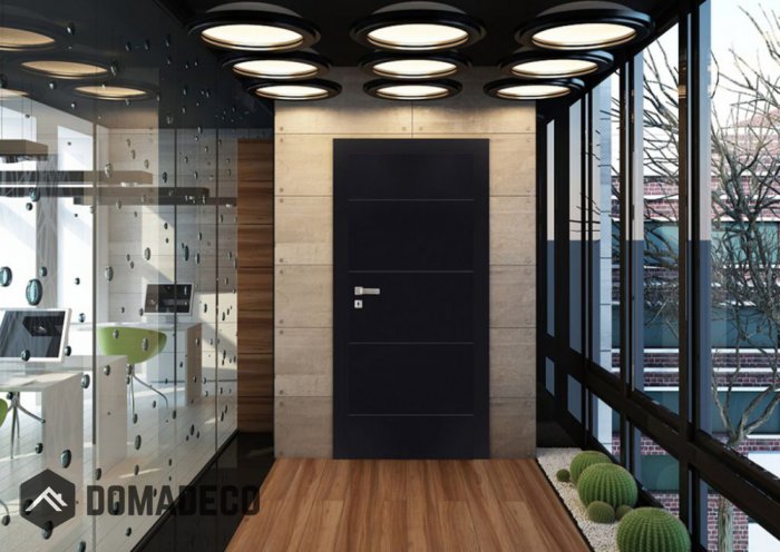 The door is made of a wooden rail and stile set topped with two HDF boards covered with ecological acrylic paint (RAL and NCS colour palette).
