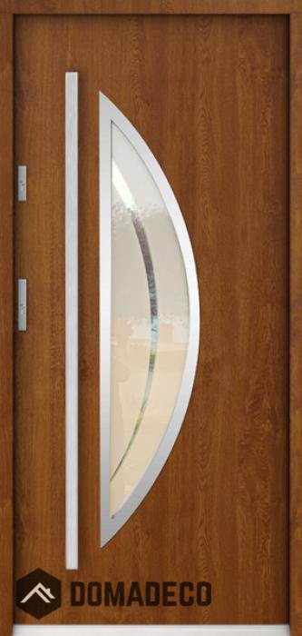 The door is made of stainless steel. Inside it is filled with PUR polyurethane foam and wood. The thickness of the door slab is 2.2 inch. Dual sealing system - one seal is in the dap of the frame and the other is located in the supporting part of the door slab. They reduce vibration and protect your house from losing the heat. They don't change their volume under the influence of atmospheric conditions. The door frame has anti-burglar reinforcements in hinge parts and locking points.