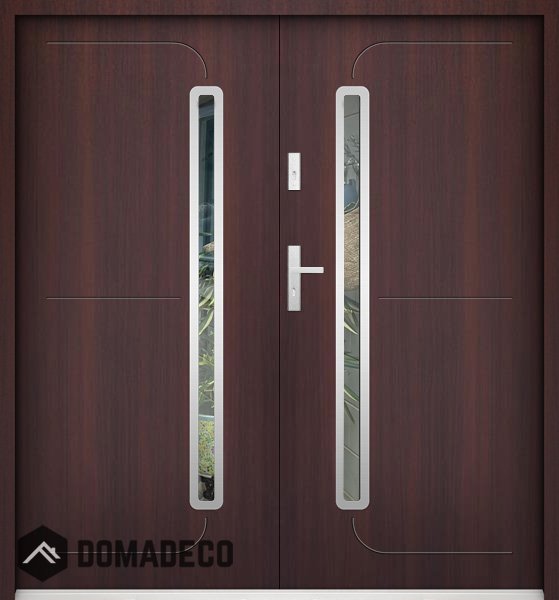 The door is made of stainless steel. Inside it is filled with PUR polyurethane foam and wood. The thickness of the door slab is 2.2 inch. Dual sealing system - one seal is in the dap of the frame and the other is located in the supporting part of the door slab. They reduce vibration and protect your house from losing the heat. They don't change their volume under the influence of atmospheric conditions. The door frame has anti-burglar reinforcements in hinge parts and locking points.