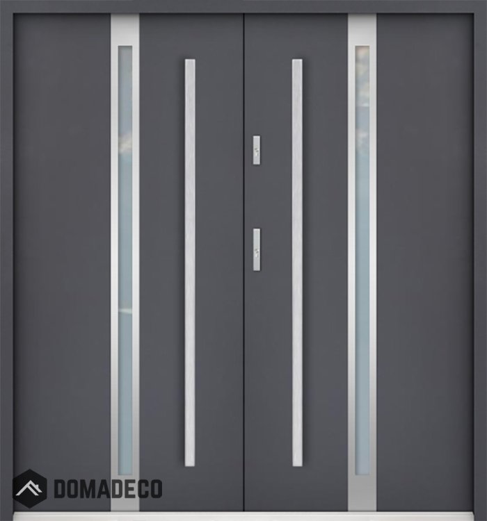 The door is made of stainless steel. Inside it is filled with PUR polyurethane foam and wood. The thickness of the door slab is 2.2 inch. Dual sealing system - one seal is in the dap of the frame and the other is located in the supporting part of the door slab. They reduce vibration and protect your house from losing the heat. They don't change their volume under the influence of atmospheric conditions. The door frame has anti-burglar reinforcements in hinge parts and locking points.