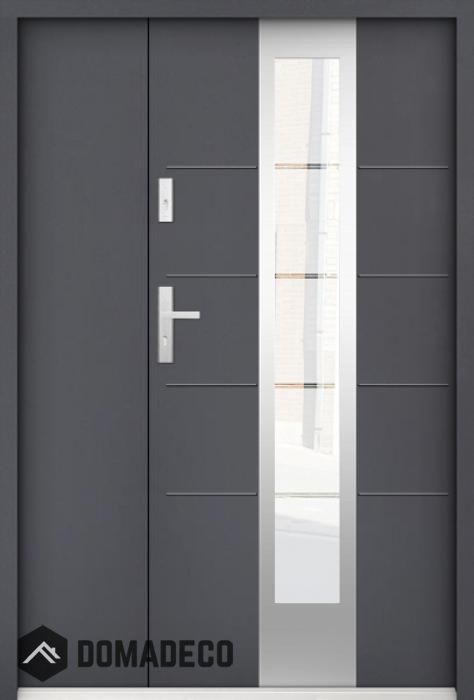 The door is made of stainless steel. Inside it is filled with PUR polyurethane foam and wood. The thickness of the door slab is 2.2 inch. Dual sealing system - one seal is in the dap of the frame and the other is located in the supporting part of the door slab. They reduce vibration and protect your house from losing the heat. They don't change their volume under the influence of atmospheric conditions. The door frame has anti-burglar reinforcements in hinge parts and locking points.